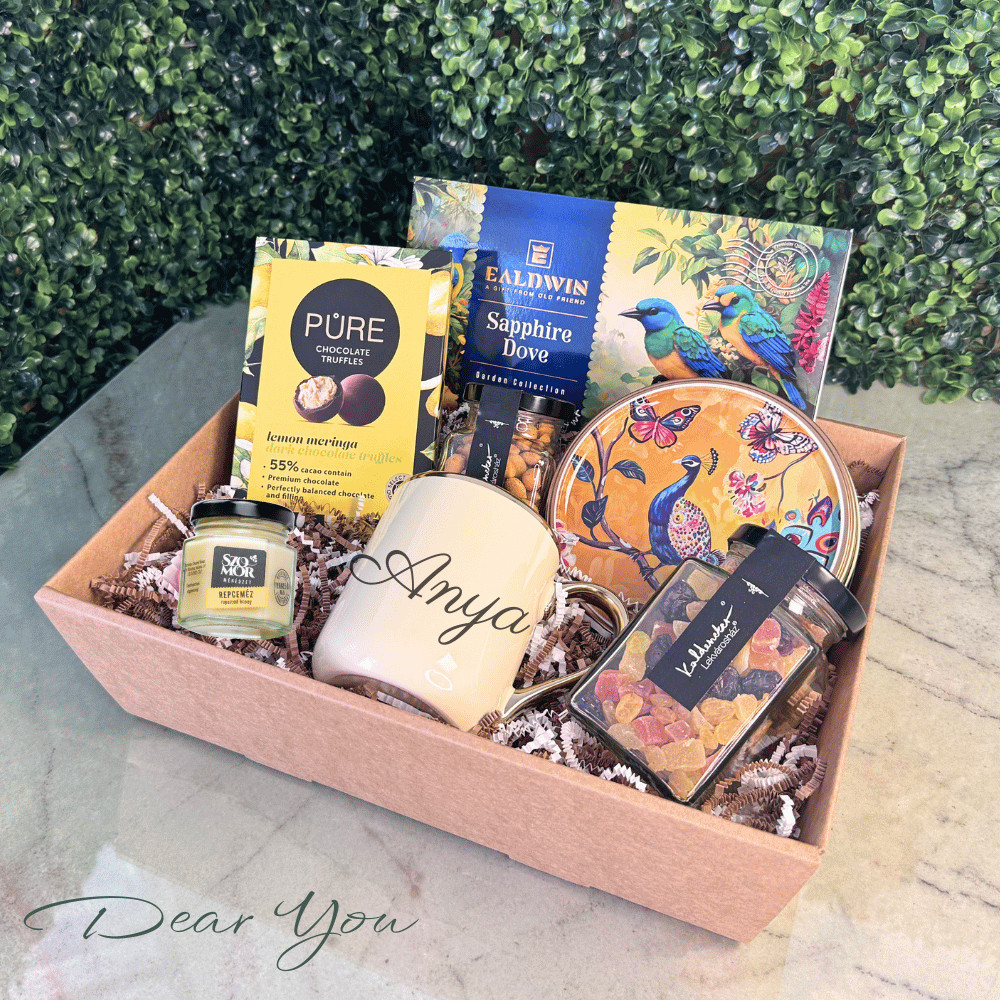 Minden termék magas minőségű, tudatosan összeválogatott, ízben és hangulatban is harmonikusan illeszkedik egymáshoz: a virágos‑gyümölcsös tea, a krémes repceméz, a csípős cajun mogyoró, a trópusi gyümölcsök, a citromos étcsoki trüffel és a vajas kekszek együtt komplex, mégis jól kiegyensúlyozott élményt adnak. A csomag prémium, látványos csomagolásban érkezik, a személyre szabható aranyszegélyes bézs bögre pedig gondoskodik arról, hogy az ajándék hosszú távon is emlékezetes maradjon – ideális választás elegáns köszönőajándéknak, üzleti partnernek, kollégának, de egy családtag vagy barát megajándékozására is.
