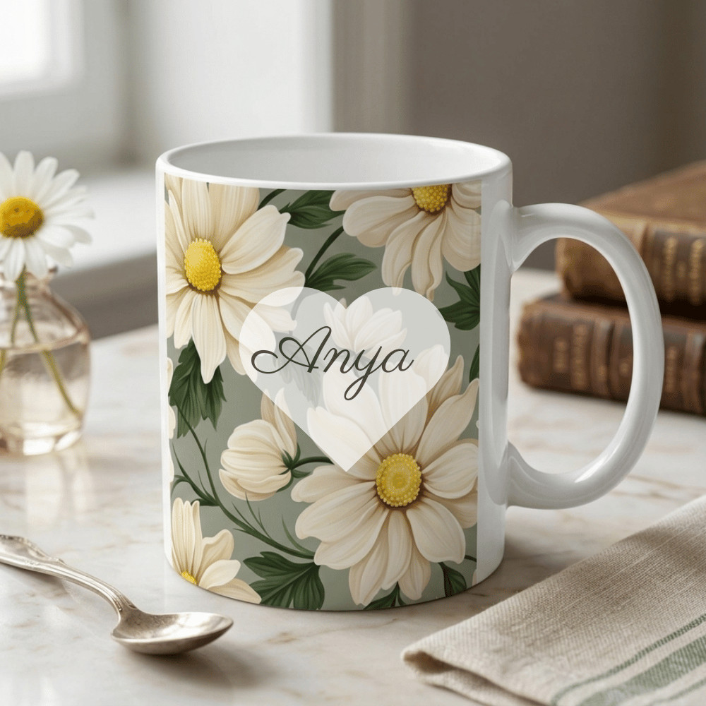 Elegáns, 300 ml‑es fehér kerámiabögre, finom, nőies designnal, amely tökéletes ajándék hölgyeknek névnapra, anyák napjára, születésnapra, köszönőajándéknak vagy csak úgy, szeretetből.